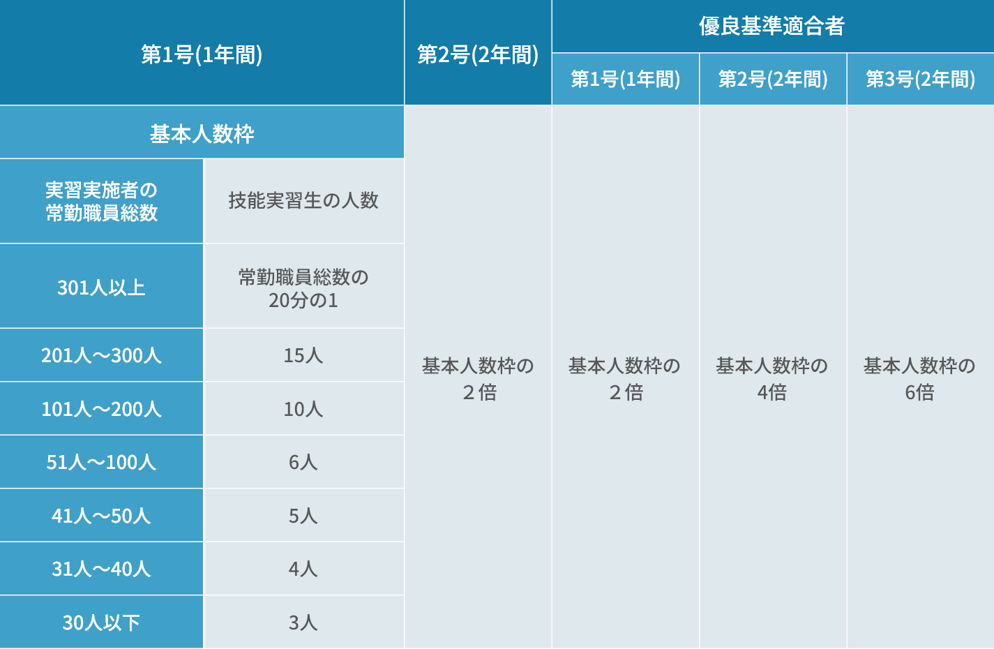 さらに、優秀な技能実習生を育成して優良企業と認められると、この2倍の人数まで受け入れが可能になります。